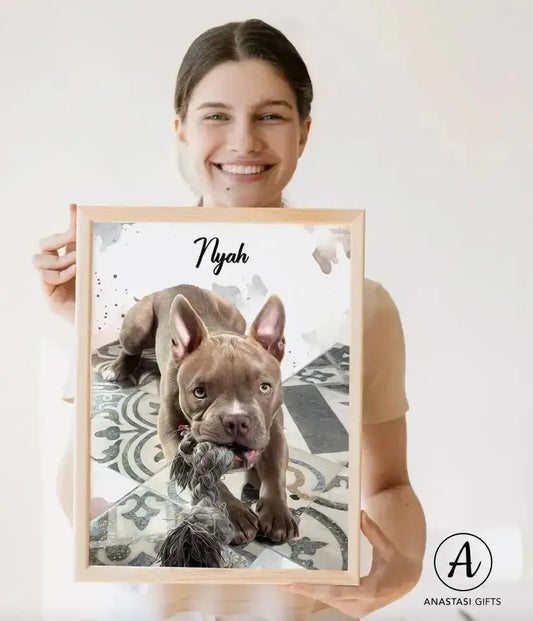 Custom Pet Watercolor Portraits Framed | Personalized Pet Artwork